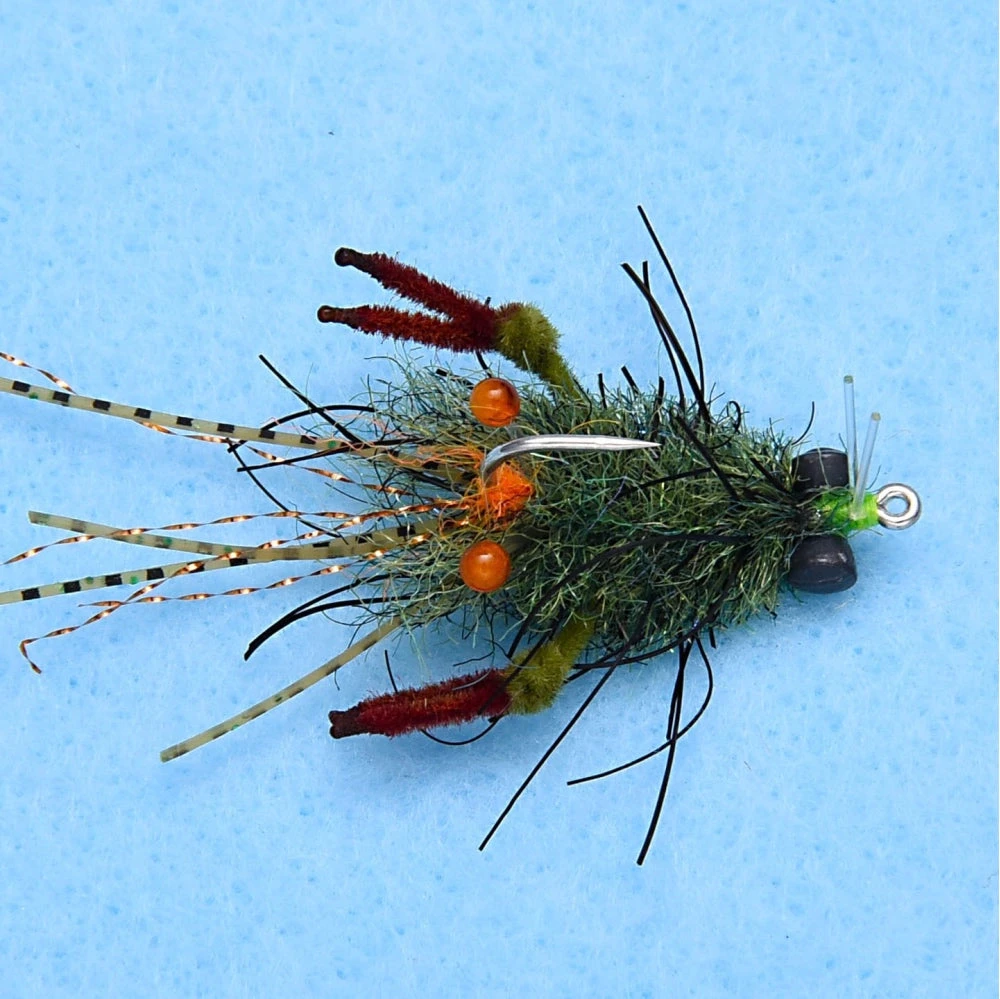 Tarantula Crab Flies are ideal for sandy bottoms to ensure hooking of Permit, Bonefish, Redfish and flats-feeders. Choose from mottled tan or mottled olive. Package includes 3 flies.