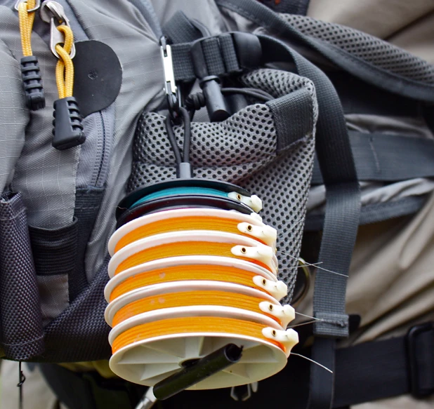 Convenient design makes tippet organization better than ever. Holds 6 spools and attaches to a pack or vest with a carabiner.